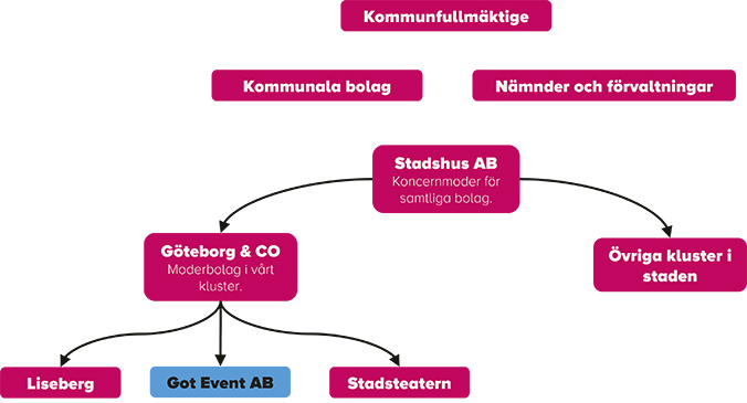 Got Event är ett kommunalt bolag som ägs av Göteborgs Stadshus. Tillsammans med Liseberg och Stadsteatern ingår vi i klustret Turism, Kultur och Evenemang där Göteborg och Co är moderbolag.